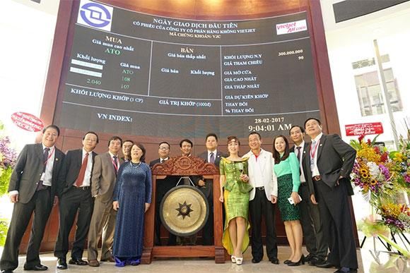 Cũng trong quý 1/2017, ngày 28/2, Vietjet đã niêm yết trên Sở giao dịch chứng khoán TPHCM với giá chào sàn 90.000 đồng/cổ phiếu. Đóng cửa ngày 20/04/2017, cổ phiếu VJC có mức giá 131.600 đồng, tăng trưởng hơn 45%. Nhà đầu tư nước ngoài có chuỗi mua ròng liên tiếp gần đây. Vietjet hiện nằm trong top 12 công ty có giá trị vốn hoá lớn nhất thị trường và thanh khoản cao.