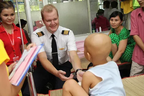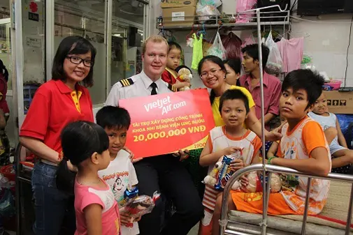 Hôm nay, ngày 29/05/2013 là ngày đầu tiên của chuỗi chương trình chào tết thiếu nhi 1/6 của VietJet. Công ty đã đến thăm và trao quà cho các trẻ em tại bênh viện Ung Bướu trong một không khí đầm ấm và vui vẻ giữa nhân viên VietJet, anh Jacob Thomsen (VietJet FO) và những trẻ em bị mắc những căn bệnh hiểm nghèo.
