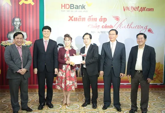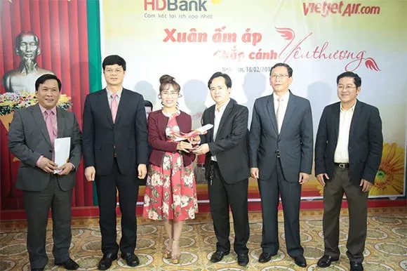 Ngày18/02/2017, tại TP. Vinh, Nghệ An, Vietjet đã thăm và tặng quà cho 100 em nhỏ tạiQuỹ Bảo trợ trẻ em Nghệ An trong chương trình " Xuân ấm áp- Chắp cánh yêuthương".