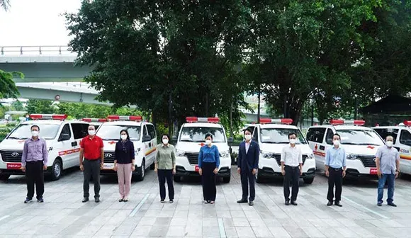 (Vietjet, TP.HCM, 22/7/2021) - Vietjet và HDBank đã trao tặng 10 xe cứu thương cho Sở Y tế TP.HCM. Các đơn vị này cũng tài trợ trang thiết bị cho các khu chăm sóc tích cực bệnh nhân nặng với tổng cộng hơn 1.000 giường cho các bệnh viện của thành phố.