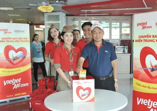 Ngay lập tức, trên khắp 3 miền Bắc – Trung – Nam, chiến dịch “Những chuyến bay cứu trợ miền Trung yêu thương” đã được Vietjet triển khai. Vietjet cũng phối hợp cùng HDBank mang hàng ngàn phần quà là các nhu yếu phẩm cho bà con tại Quảng Bình và Hà Tĩnh, đồng thời hỗ trợ kinh phí sửa chữa nhà cho 5 hộ gia đình có nhà thiệt hại nặng nề do lũ gây ra.
